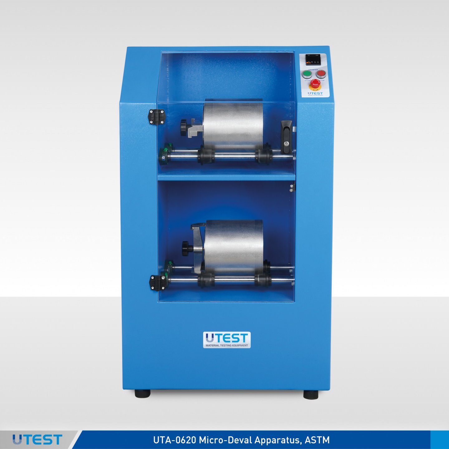 The Micro Deval Testing Machine is used to determine the resistance to wear of aggregates. The machine consists of a steel frame, two stainless steel jar stainless steel spheres (2 pcs) and an automatic digital counter which allows machine to stop automatically at the preset number of revolutions. -